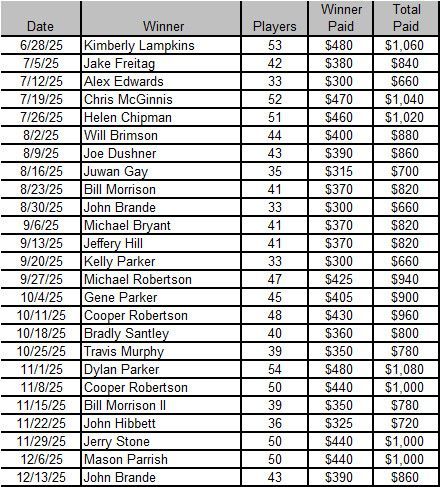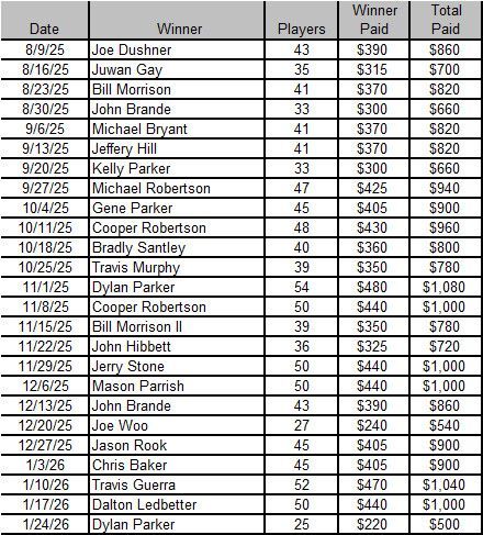- 50 players max (9-Ball), 40 Max (8-Ball)